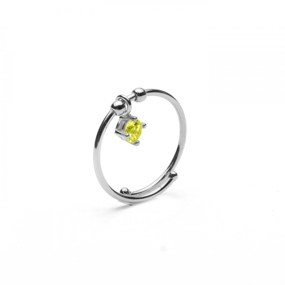 Anello regolabile con pietra pendente gialla