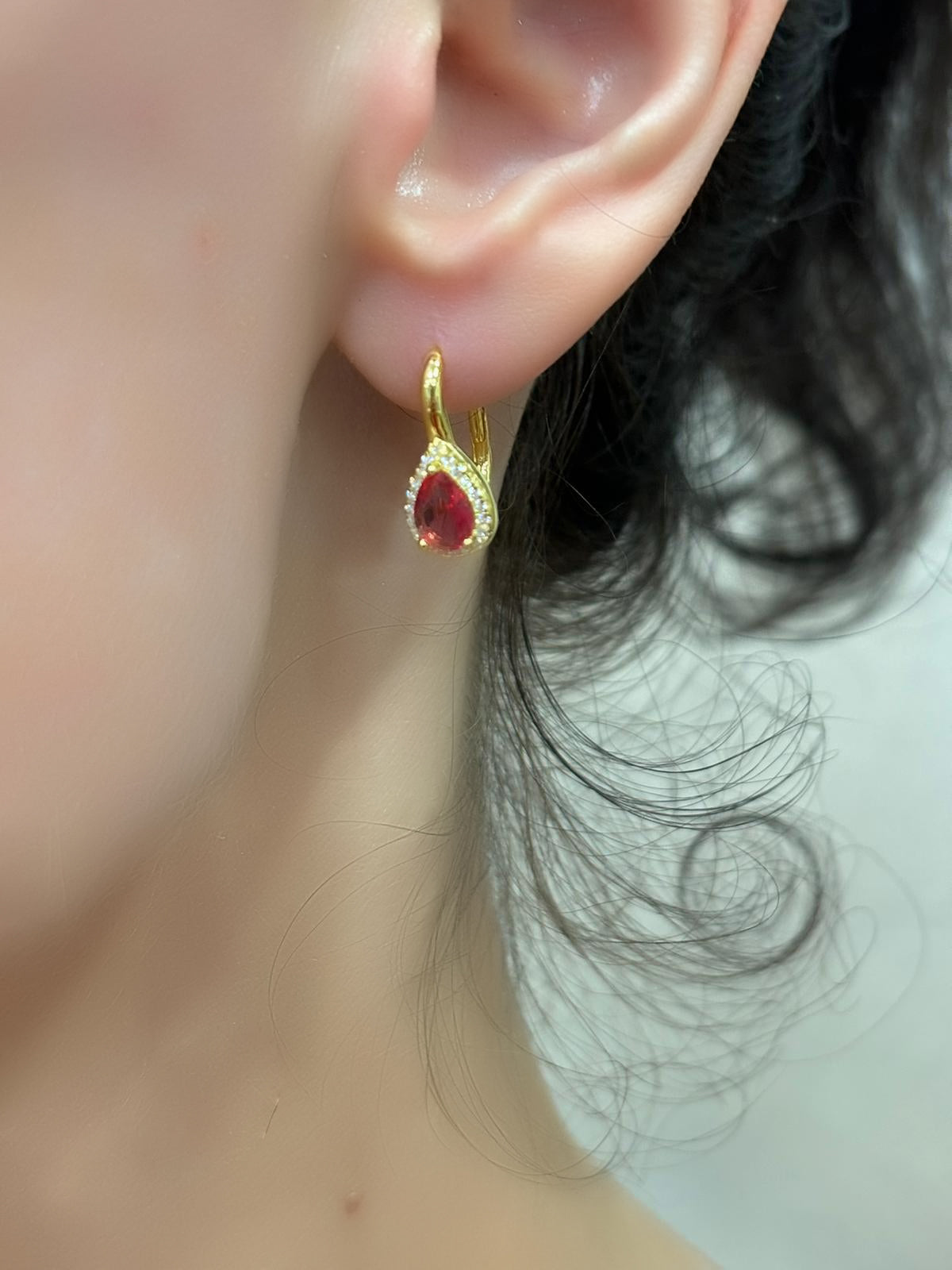 Orecchini goccia pietra rossa